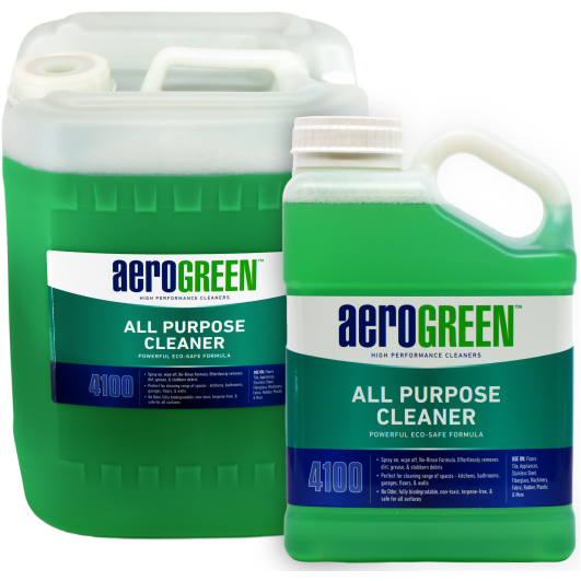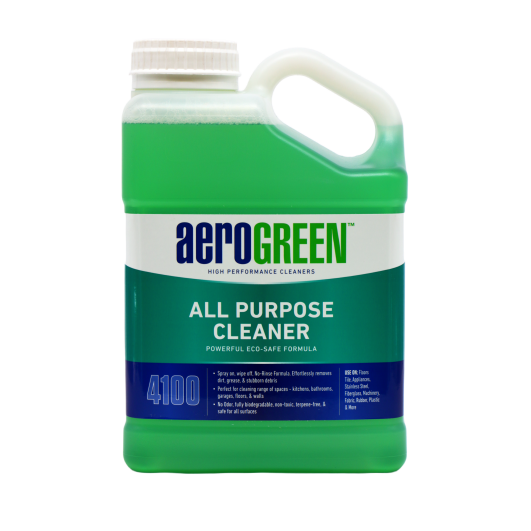 Aerogreen 4100 - All Purpose Cleaner's powerful grease-cutting formula is ideal for cleaning small parts and removing grease, oils, and dirt from small spaces. Used inside or outside, Aerogreen 4100 efficiently works on all surfaces, leaving the area clean.