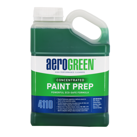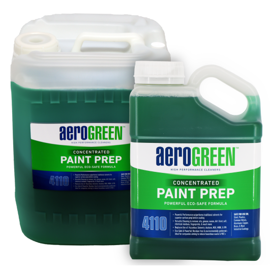 Aerogreen 4110 - Paint Prep is compatible with most industrial paints, coatings, and primers. It will also/work with powder coatings, lacquers, acrylic enamels, fast-drying coatings, solvent-based coatings, latex and alkyd paints, water-based finishes/primers, polyurethane, automotive clear coats, military coatings, epoxy finishes/primers, plastic finishes/primers, pigmented top coatings, and water-based and alkyd stains.