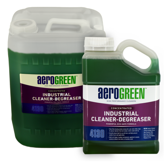 It reduces surface tension, dissolves or breaks down substances, suspends oily residues, and lifts and loosens dirt. Aerogreen 4130 - Industrial Cleaner & Degreaser combines chemical properties and mechanisms to achieve thorough and efficient cleaning results.